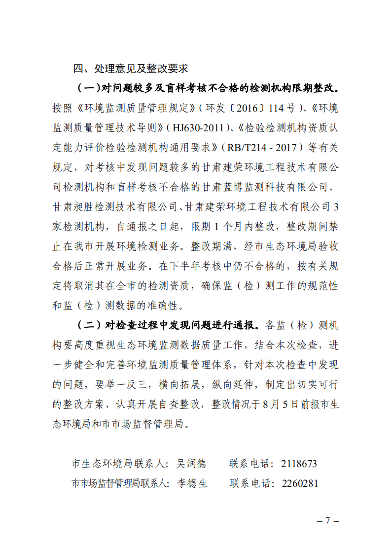 關于2020年上半年全市生態(tài)環(huán)境監(jiān)(檢)測數據質量專項檢查情況的通報