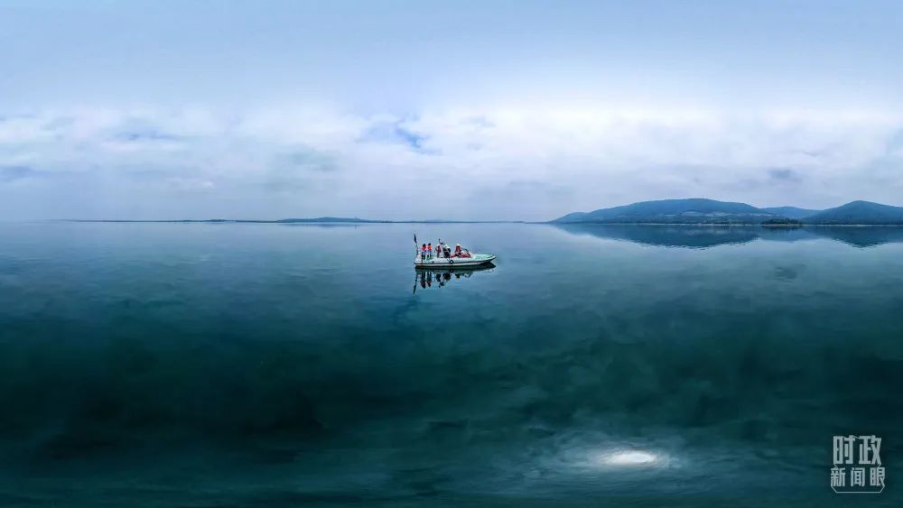 丹江口水庫,工作人員正在采集水樣。(總臺(tái)國廣記者李晉拍攝)